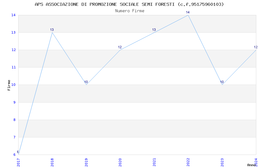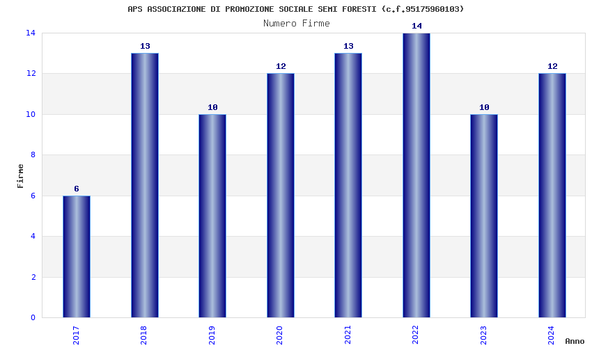 | Anno | Firme | Importi | Media | Naz. | Reg. | Prov. | Comu. |