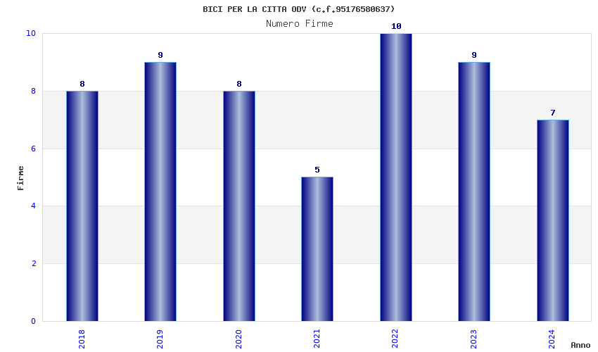 | Anno | Firme | Importi | Media | Naz. | Reg. | Prov. | Comu. |