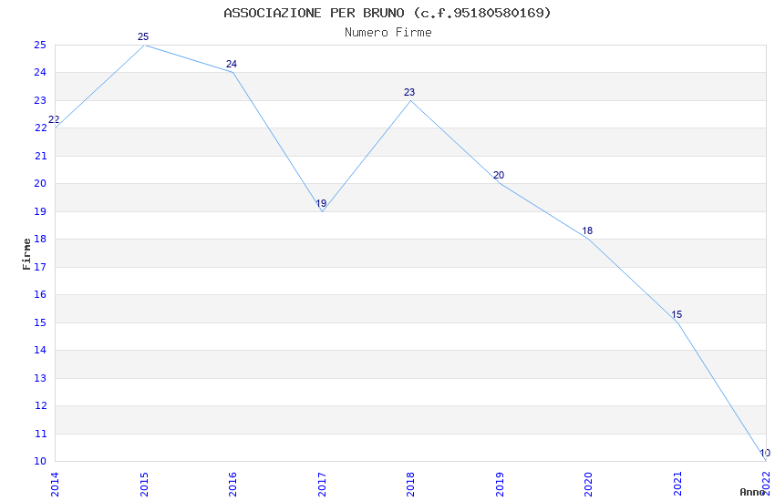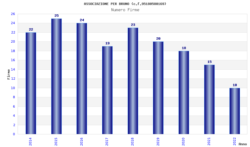 | Anno | Firme | Importi | Media | Naz. | Reg. | Prov. | Comu. |
