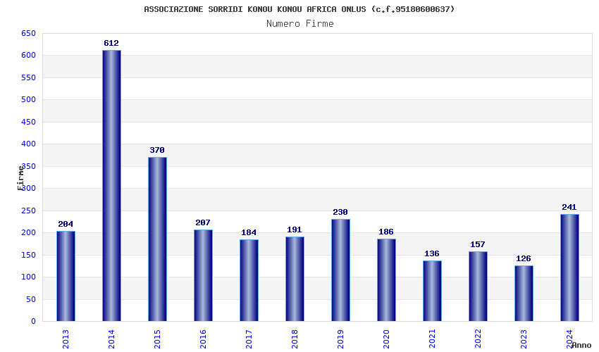 | Anno | Firme | Importi | Media | Naz. | Reg. | Prov. | Comu. |