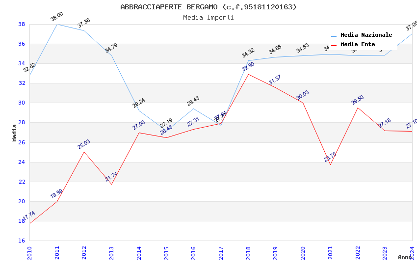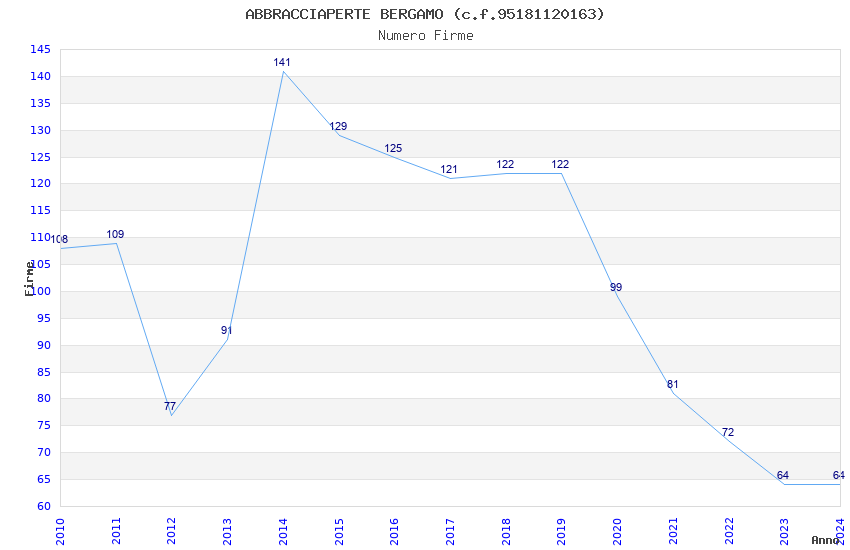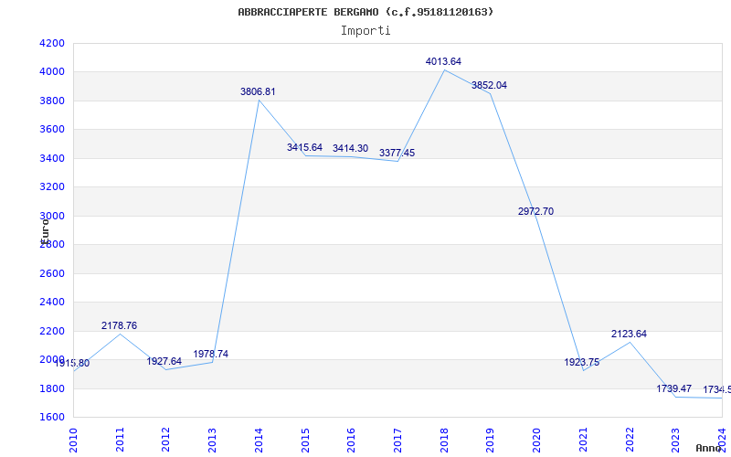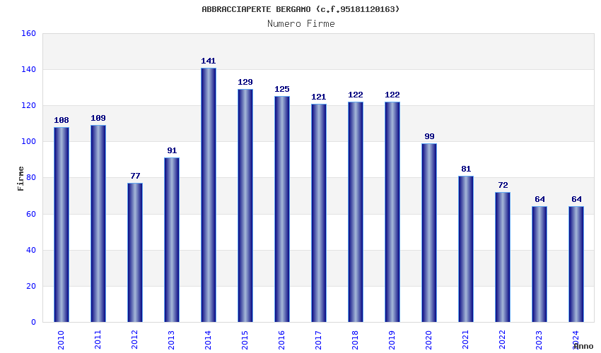 | Anno | Firme | Importi | Media | Naz. | Reg. | Prov. | Comu. |
