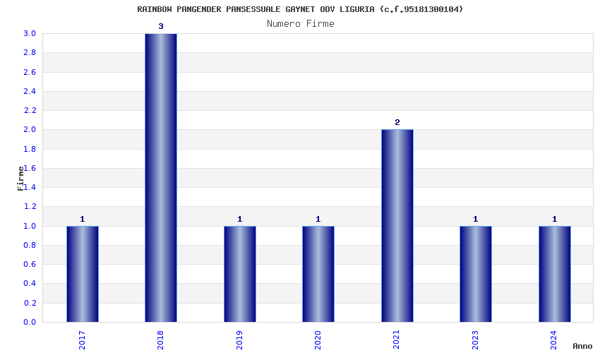 | Anno | Firme | Importi | Media | Naz. | Reg. | Prov. | Comu. |