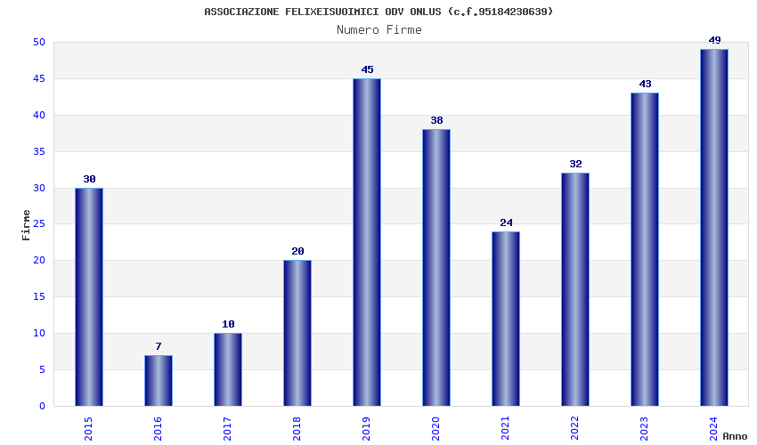 | Anno | Firme | Importi | Media | Naz. | Reg. | Prov. | Comu. |