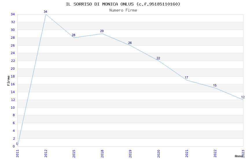| Anno | Firme | Importi | Media | Naz. | Reg. | Prov. | Comu. |