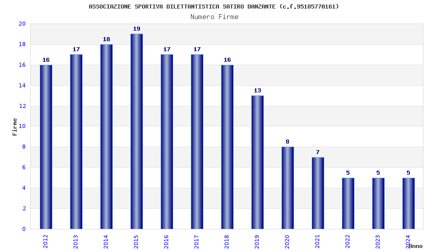 | Anno | Firme | Importi | Media | Naz. | Reg. | Prov. | Comu. |