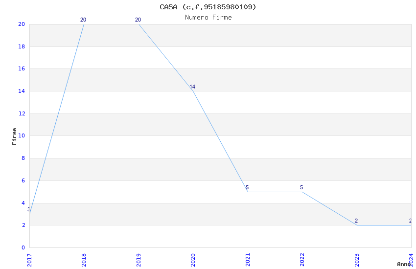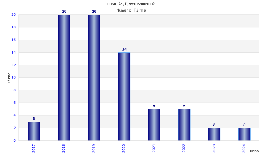 | Anno | Firme | Importi | Media | Naz. | Reg. | Prov. | Comu. |