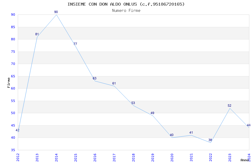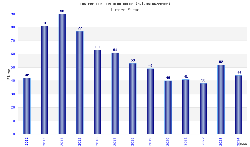 | Anno | Firme | Importi | Media | Naz. | Reg. | Prov. | Comu. |