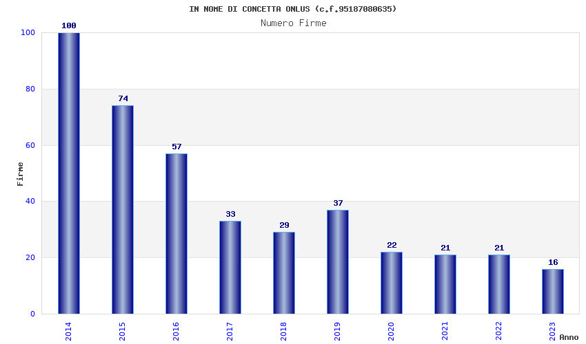 | Anno | Firme | Importi | Media | Naz. | Reg. | Prov. | Comu. |