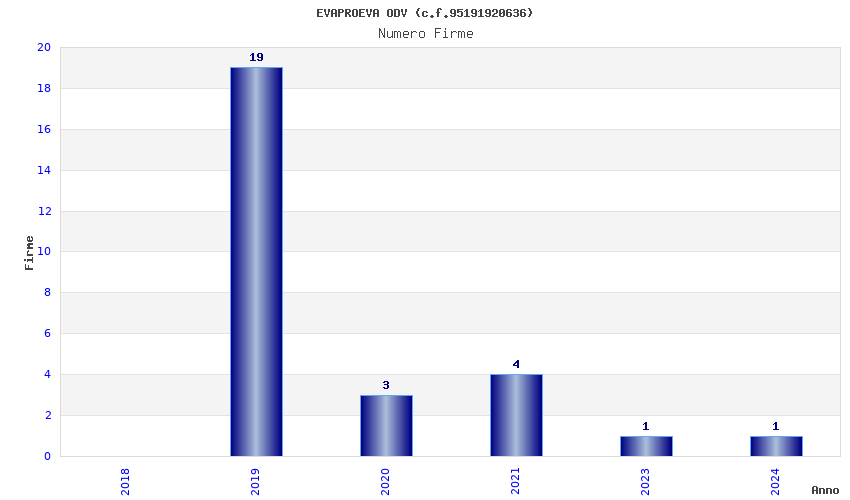 | Anno | Firme | Importi | Media | Naz. | Reg. | Prov. | Comu. |