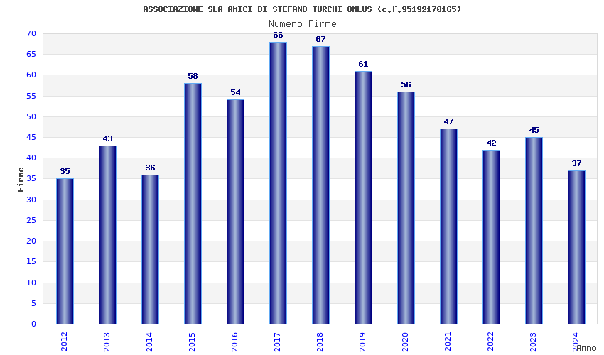 | Anno | Firme | Importi | Media | Naz. | Reg. | Prov. | Comu. |