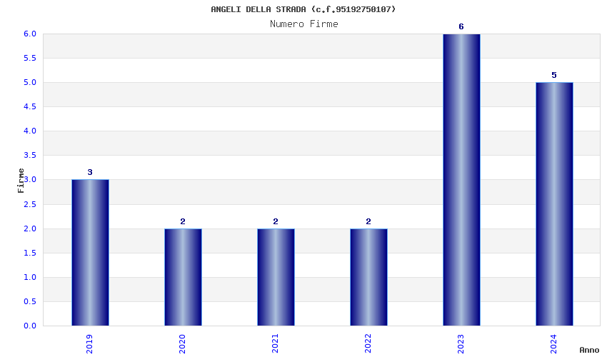 | Anno | Firme | Importi | Media | Naz. | Reg. | Prov. | Comu. |