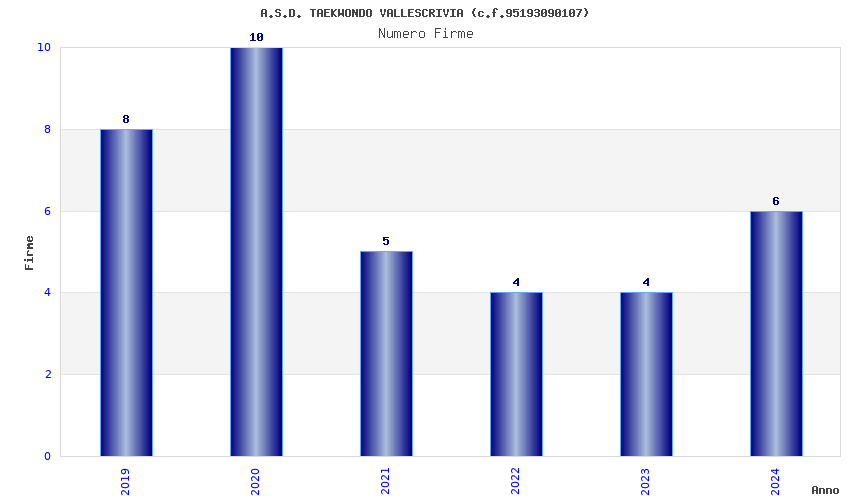 | Anno | Firme | Importi | Media | Naz. | Reg. | Prov. | Comu. |