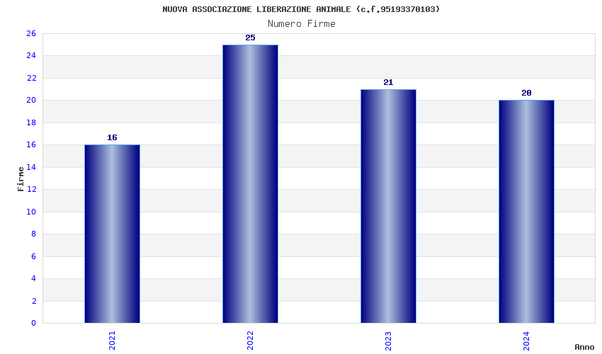 | Anno | Firme | Importi | Media | Naz. | Reg. | Prov. | Comu. |