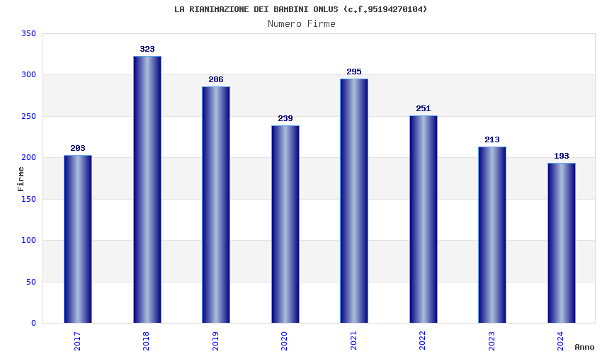 | Anno | Firme | Importi | Media | Naz. | Reg. | Prov. | Comu. |