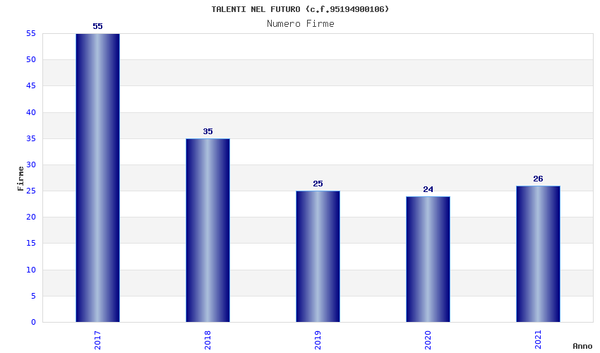 | Anno | Firme | Importi | Media | Naz. | Reg. | Prov. | Comu. |