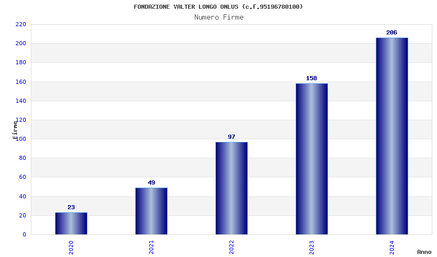 | Anno | Firme | Importi | Media | Naz. | Reg. | Prov. | Comu. |