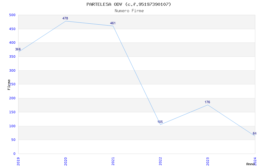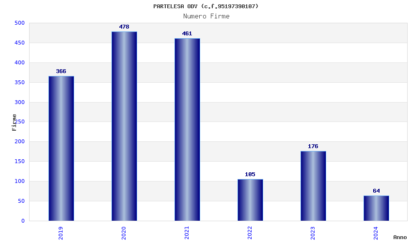 | Anno | Firme | Importi | Media | Naz. | Reg. | Prov. | Comu. |