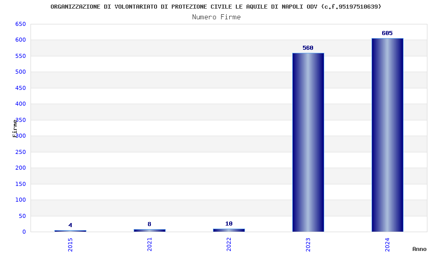| Anno | Firme | Importi | Media | Naz. | Reg. | Prov. | Comu. |