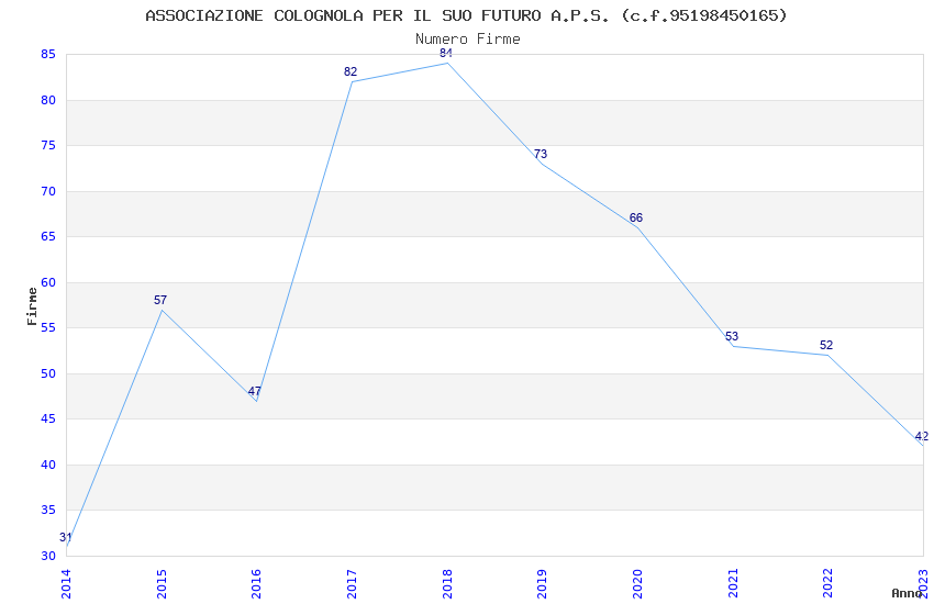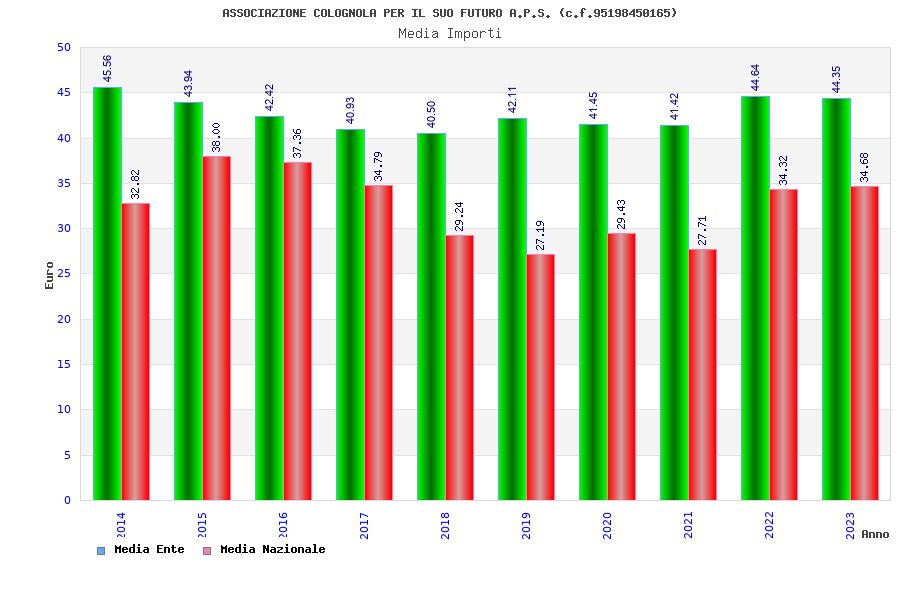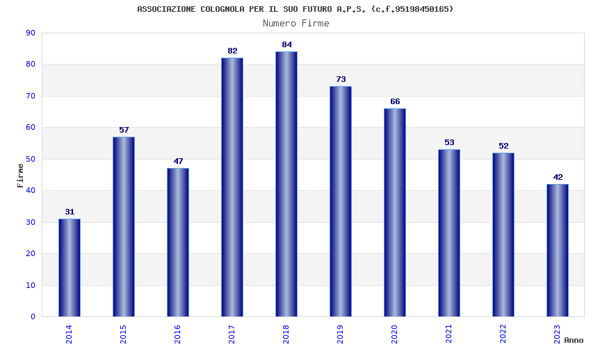 | Anno | Firme | Importi | Media | Naz. | Reg. | Prov. | Comu. |