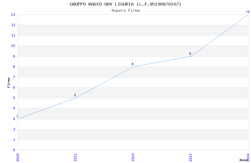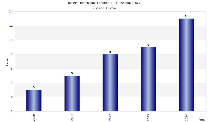 | Anno | Firme | Importi | Media | Naz. | Reg. | Prov. | Comu. |