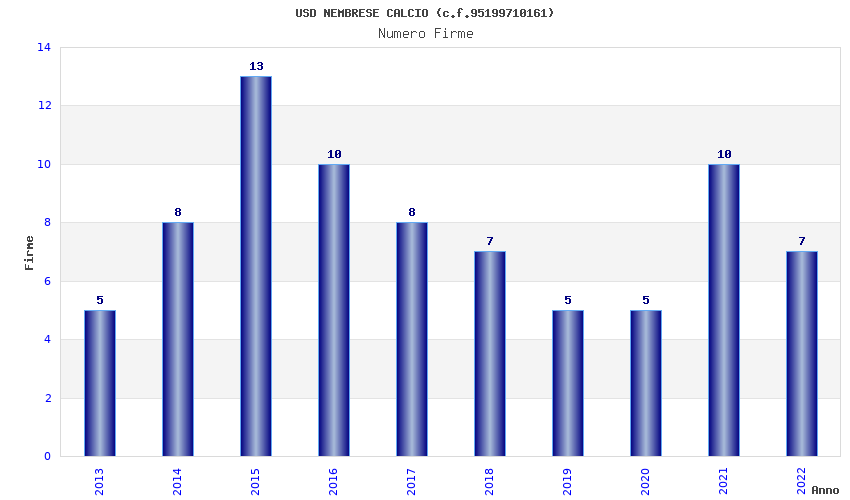 | Anno | Firme | Importi | Media | Naz. | Reg. | Prov. | Comu. |