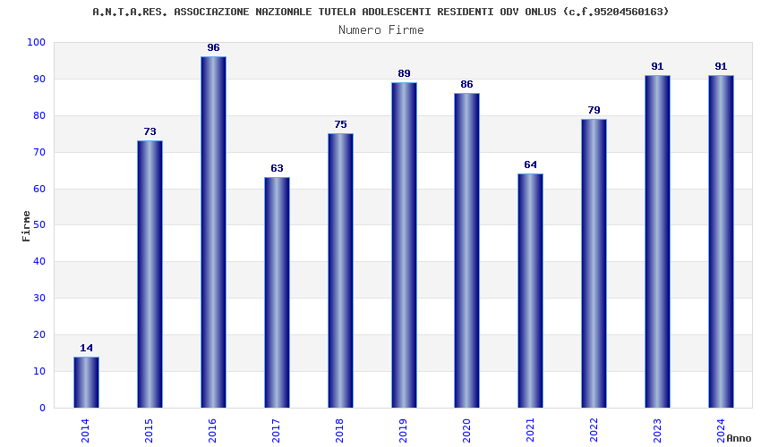 | Anno | Firme | Importi | Media | Naz. | Reg. | Prov. | Comu. |