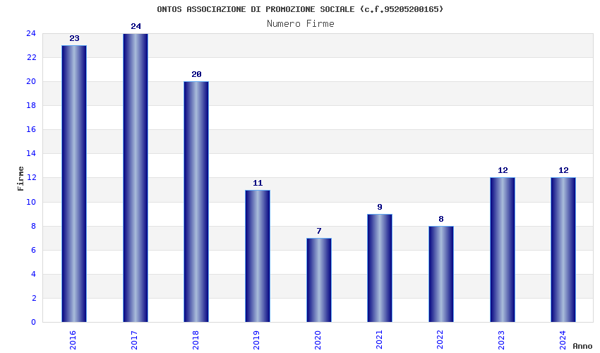 | Anno | Firme | Importi | Media | Naz. | Reg. | Prov. | Comu. |
