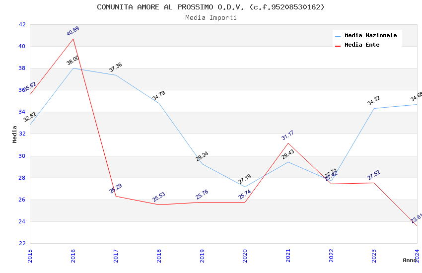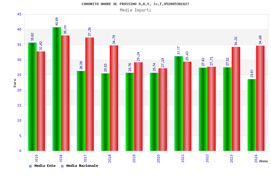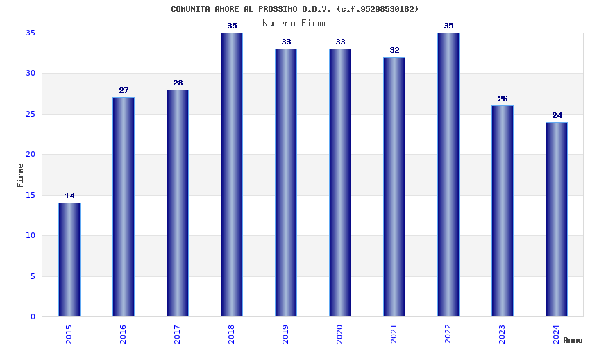 | Anno | Firme | Importi | Media | Naz. | Reg. | Prov. | Comu. |
