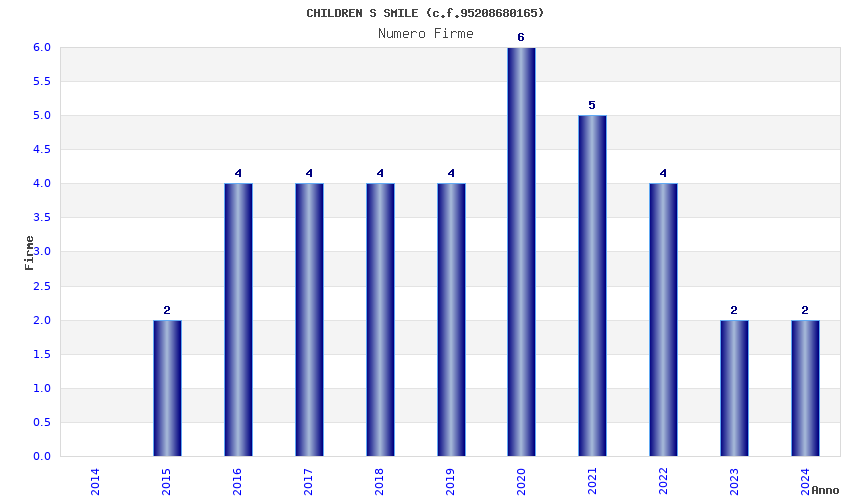 | Anno | Firme | Importi | Media | Naz. | Reg. | Prov. | Comu. |