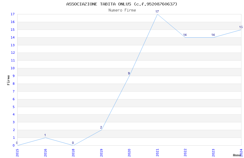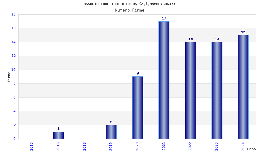 | Anno | Firme | Importi | Media | Naz. | Reg. | Prov. | Comu. |