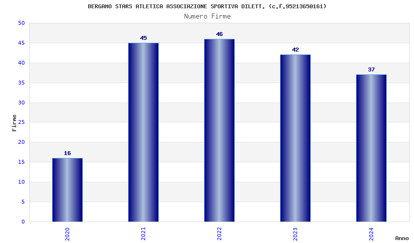 | Anno | Firme | Importi | Media | Naz. | Reg. | Prov. | Comu. |