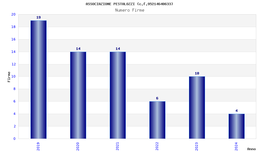 | Anno | Firme | Importi | Media | Naz. | Reg. | Prov. | Comu. |