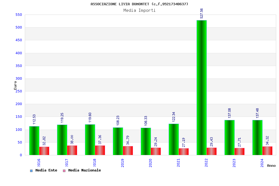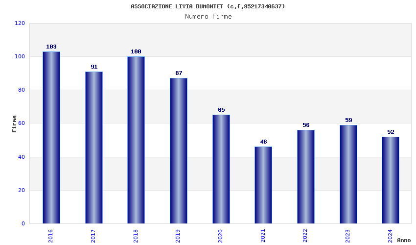 | Anno | Firme | Importi | Media | Naz. | Reg. | Prov. | Comu. |