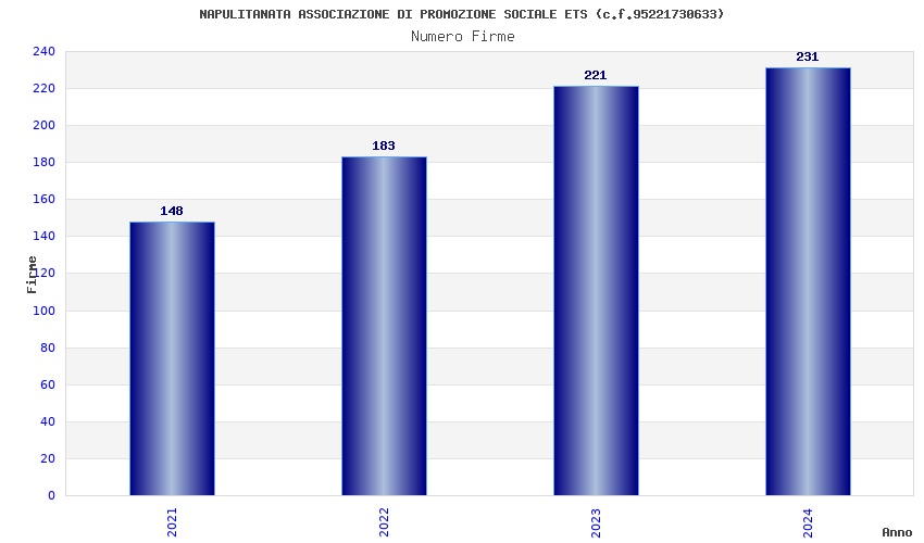 | Anno | Firme | Importi | Media | Naz. | Reg. | Prov. | Comu. |