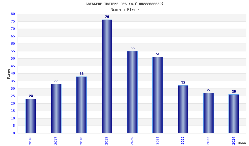 | Anno | Firme | Importi | Media | Naz. | Reg. | Prov. | Comu. |
