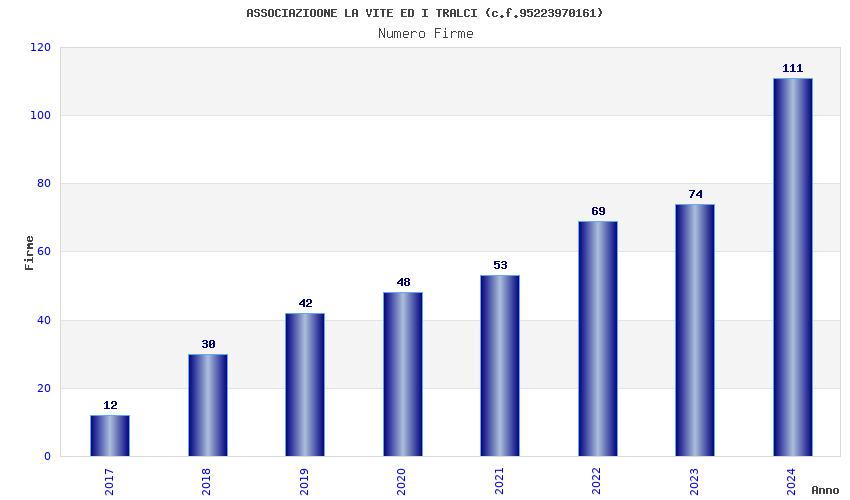 | Anno | Firme | Importi | Media | Naz. | Reg. | Prov. | Comu. |