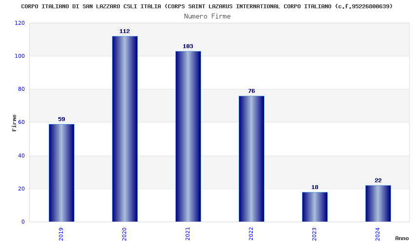 | Anno | Firme | Importi | Media | Naz. | Reg. | Prov. | Comu. |