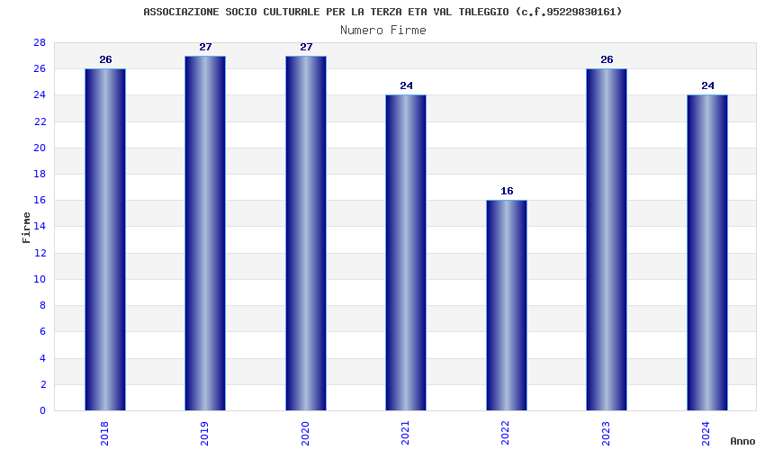 | Anno | Firme | Importi | Media | Naz. | Reg. | Prov. | Comu. |