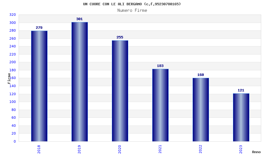 | Anno | Firme | Importi | Media | Naz. | Reg. | Prov. | Comu. |