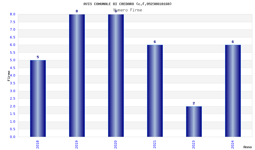 | Anno | Firme | Importi | Media | Naz. | Reg. | Prov. | Comu. |