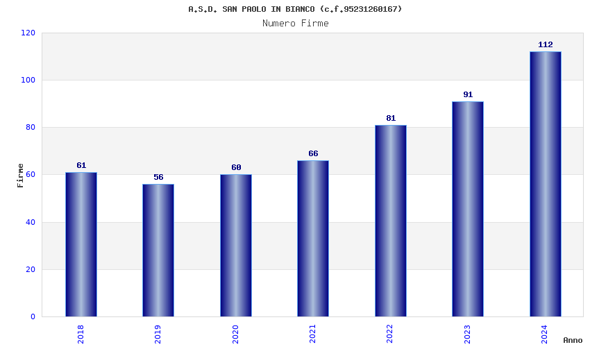 | Anno | Firme | Importi | Media | Naz. | Reg. | Prov. | Comu. |