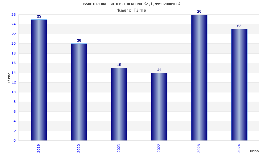 | Anno | Firme | Importi | Media | Naz. | Reg. | Prov. | Comu. |