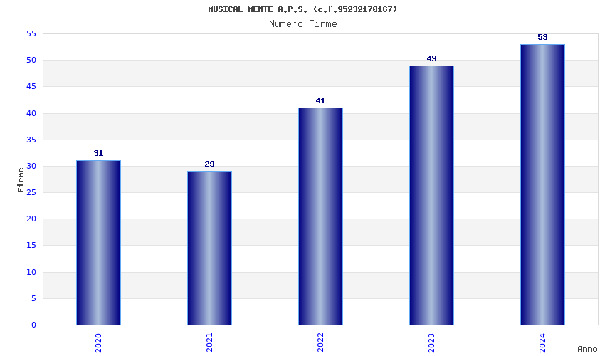 | Anno | Firme | Importi | Media | Naz. | Reg. | Prov. | Comu. |