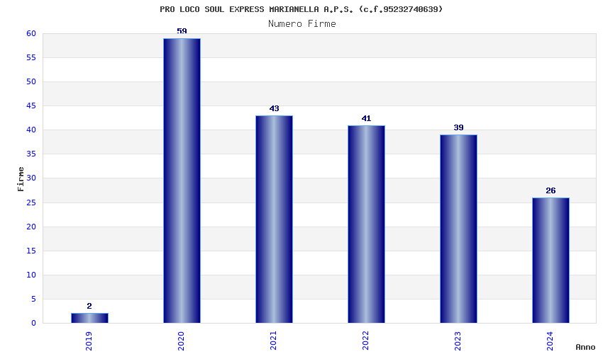 | Anno | Firme | Importi | Media | Naz. | Reg. | Prov. | Comu. |