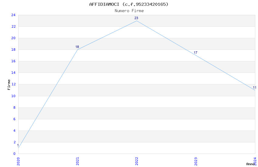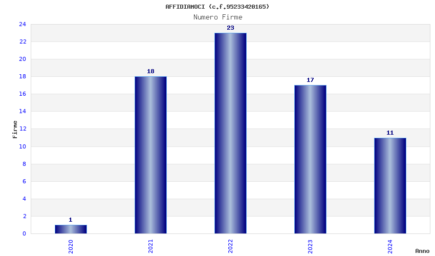 | Anno | Firme | Importi | Media | Naz. | Reg. | Prov. | Comu. |