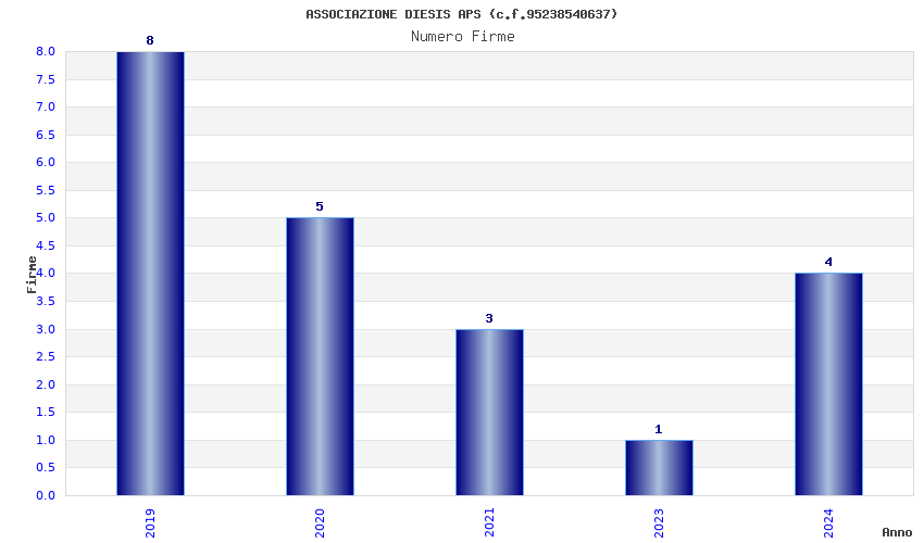 | Anno | Firme | Importi | Media | Naz. | Reg. | Prov. | Comu. |