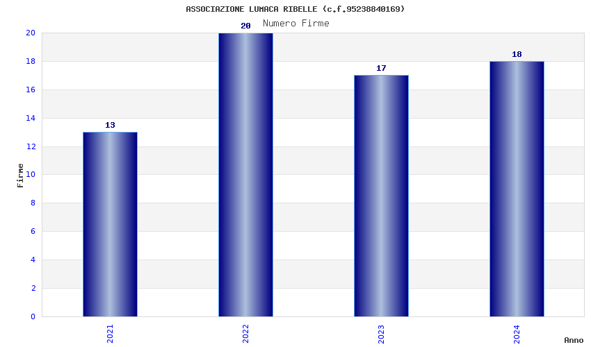 | Anno | Firme | Importi | Media | Naz. | Reg. | Prov. | Comu. |
