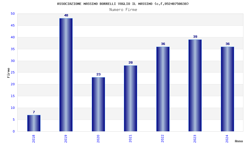 | Anno | Firme | Importi | Media | Naz. | Reg. | Prov. | Comu. |