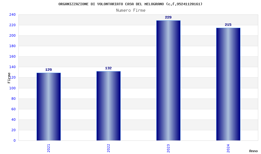 | Anno | Firme | Importi | Media | Naz. | Reg. | Prov. | Comu. |