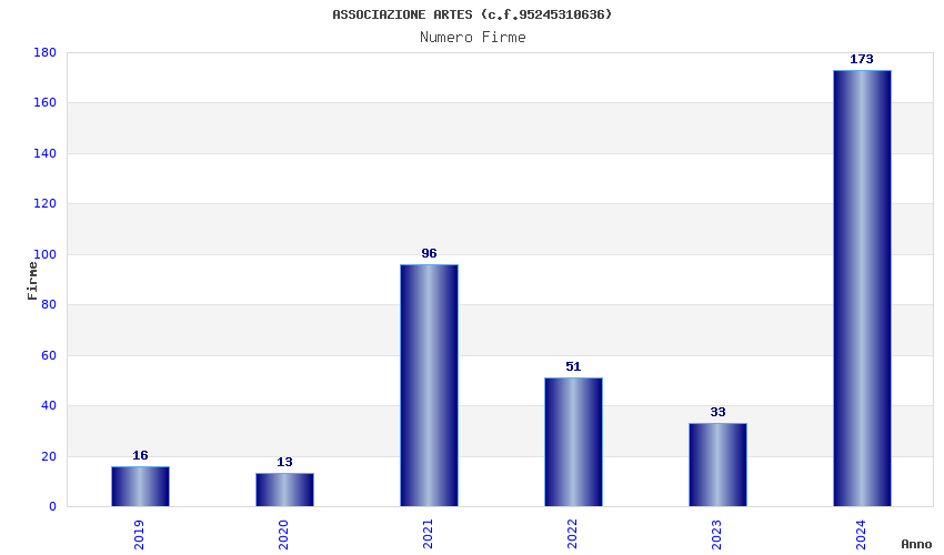 | Anno | Firme | Importi | Media | Naz. | Reg. | Prov. | Comu. |